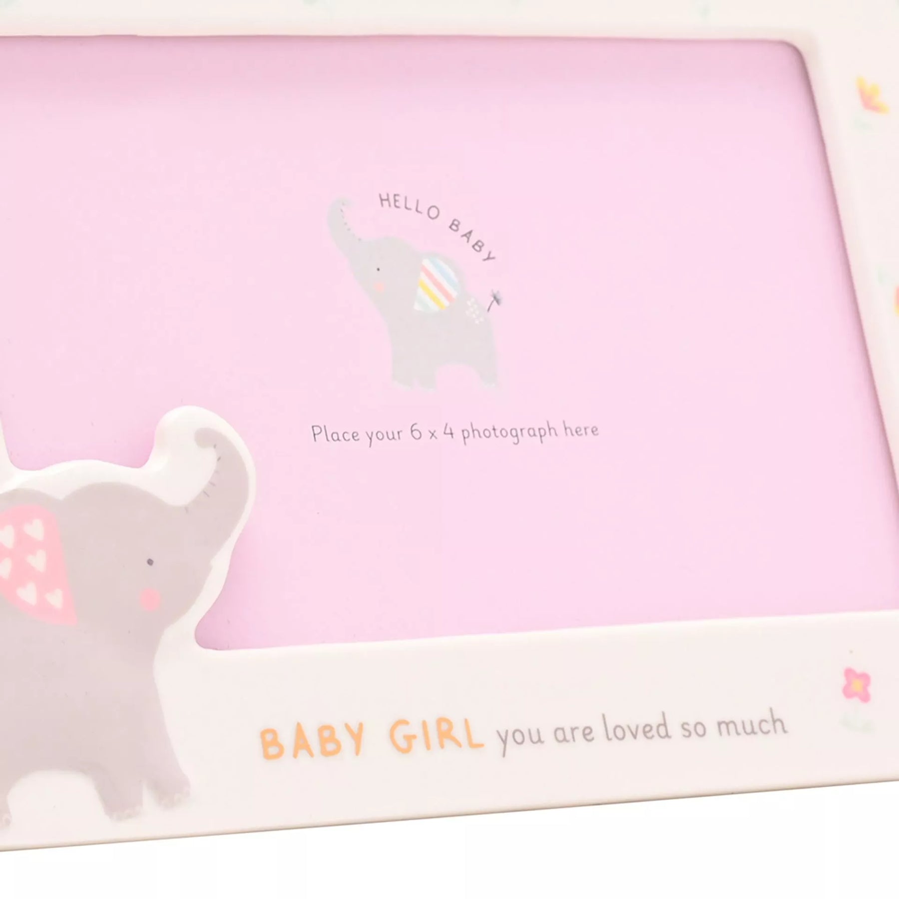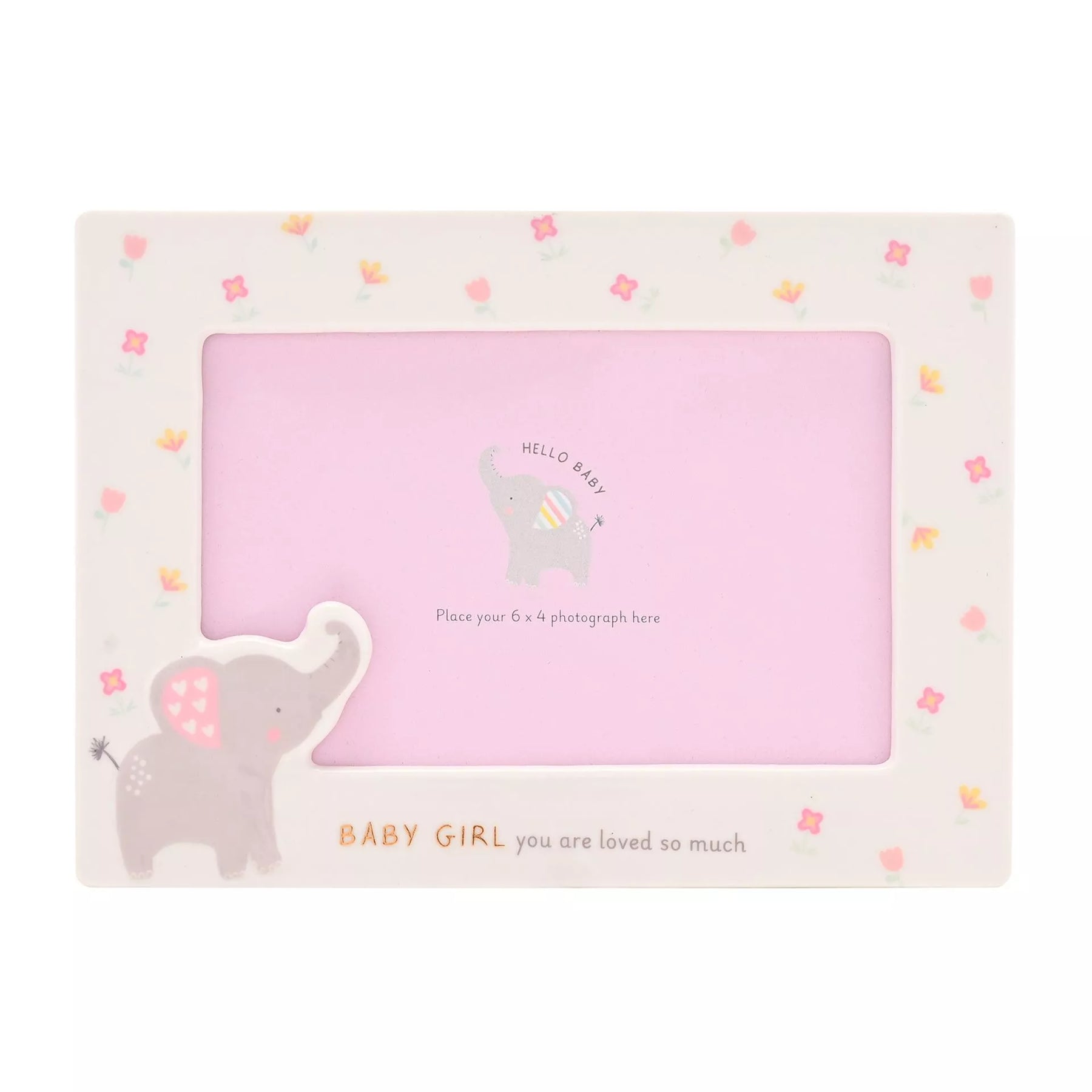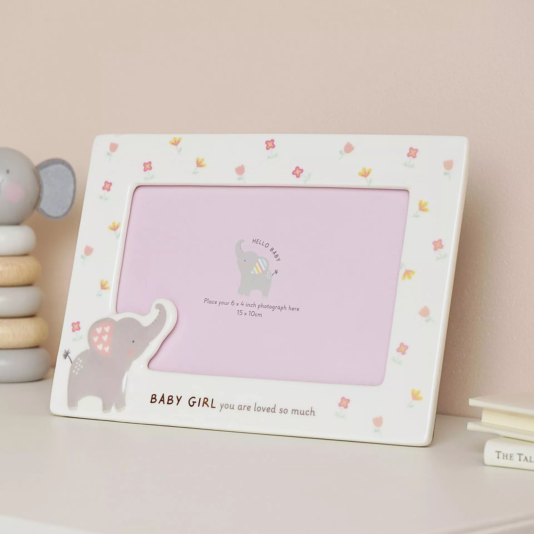 Celebrate a new arrival with the Hello Baby Ceramic Frame - Girl, a sweet and stylish way to display special memories. Crafted from ceramic, this light cream frame features a pink elephant illustration with colourful star details and the message “Baby girl you are loved so much.” It’s a thoughtful gift for new parents or a lovely keepsake for the nursery. Explore the Hello Baby collection for more adorable designs and meaningful gifts.