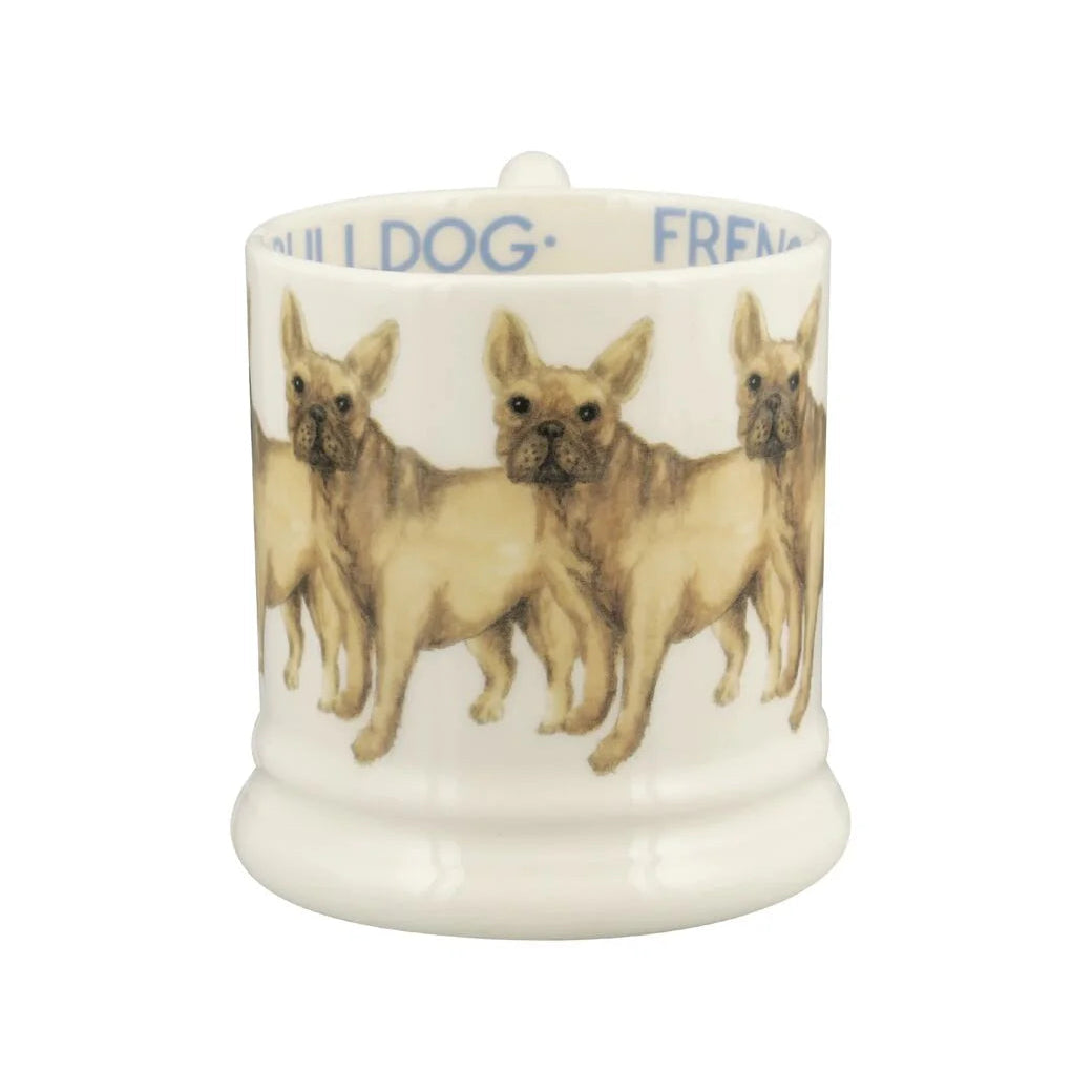 Just look at those eyes! There’s a lot to love about a Frenchie, especially with those bat-like ears as well. It’s easy to see why these dogs have a reputation for being affectionate and gentle with children, making them great companions. Frenchies are highly deserving of being featured on an Emma Bridgewater mug as part of our Dogs collection. We hope you’ll agree our carefully hand-crafted French Bulldog 1/2 Pint Mug is equally deserving of a place in your kitchen.