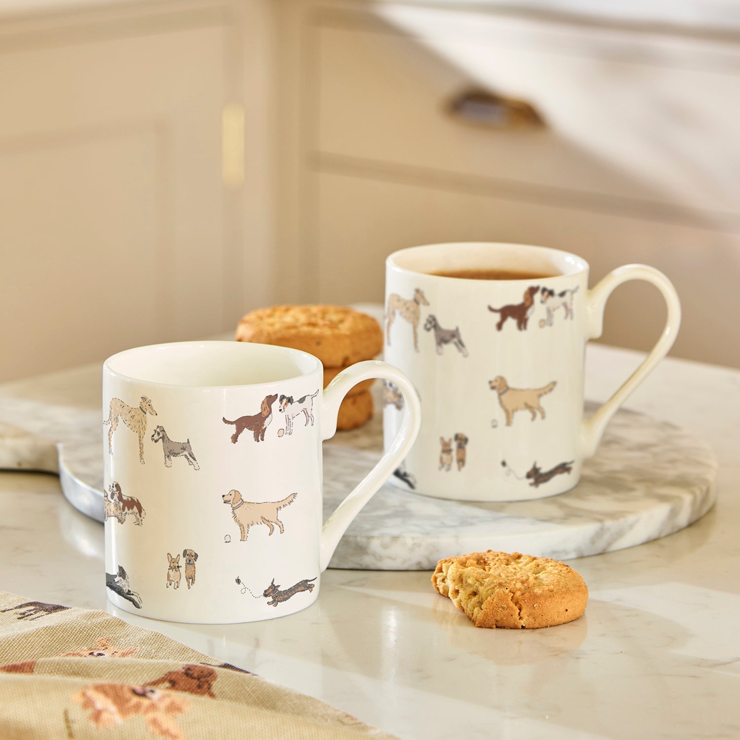 A lovely gift idea for dog owners, this fine bone china mug features Sophie’s charming hand-drawn illustrations of playful pups. Available in both standard and large sizes, it's perfect for tea, coffee, or hot chocolate. A playful addition to any kitchen cupboard.