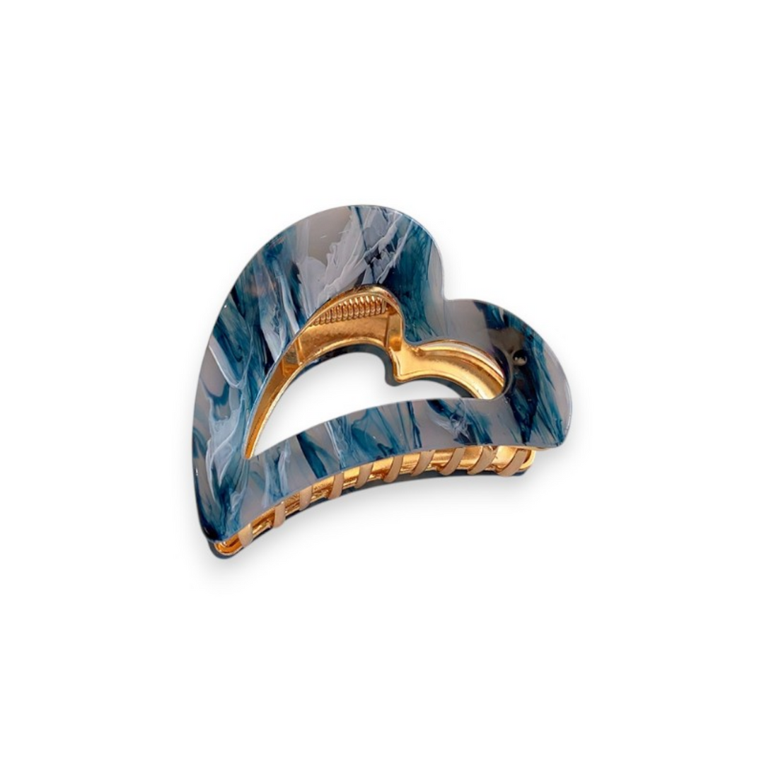 Deep Blue Marbled Heart Silhouette Claw Clip