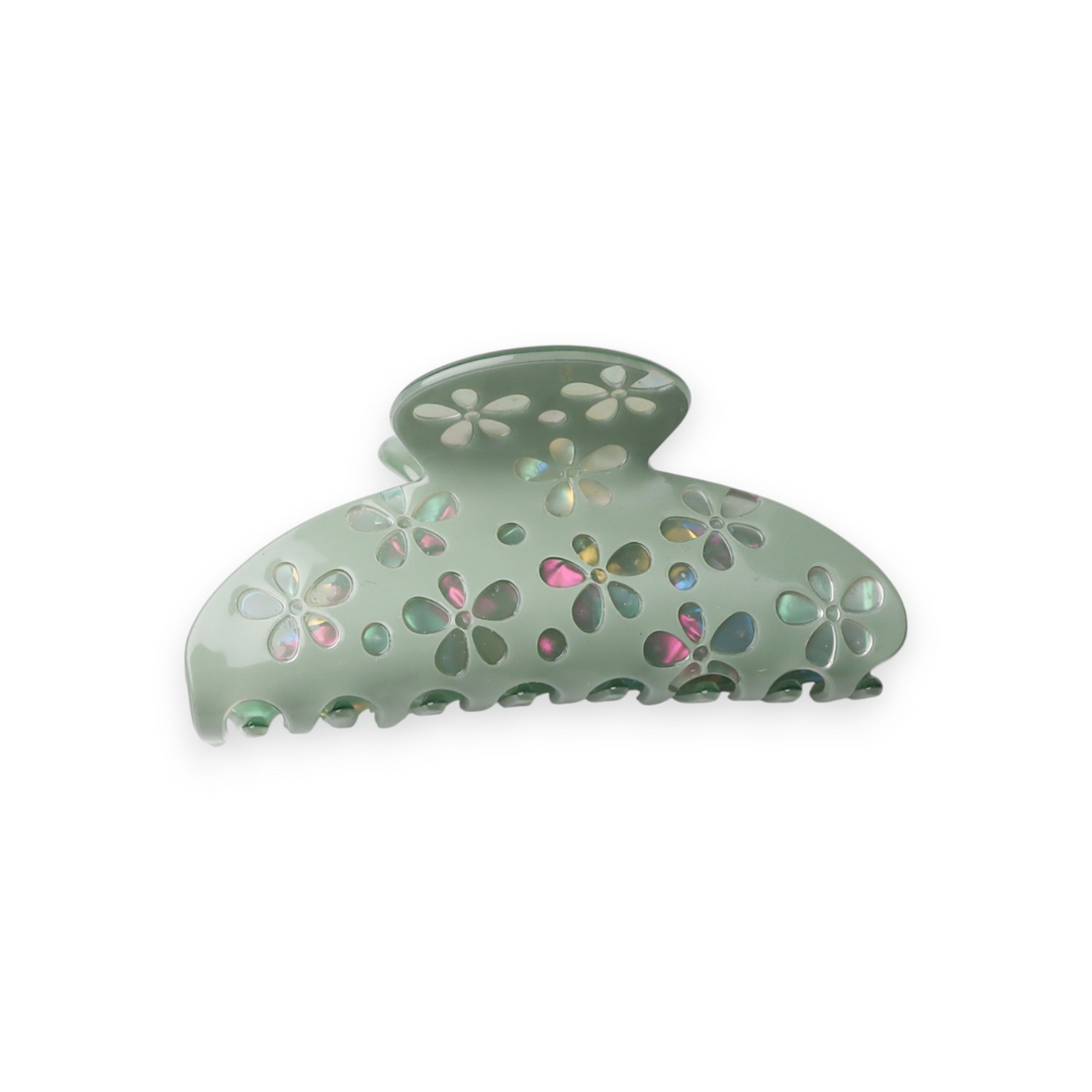 Pink & Blue Floral Claw Hair Clip – Soft Blush Detail