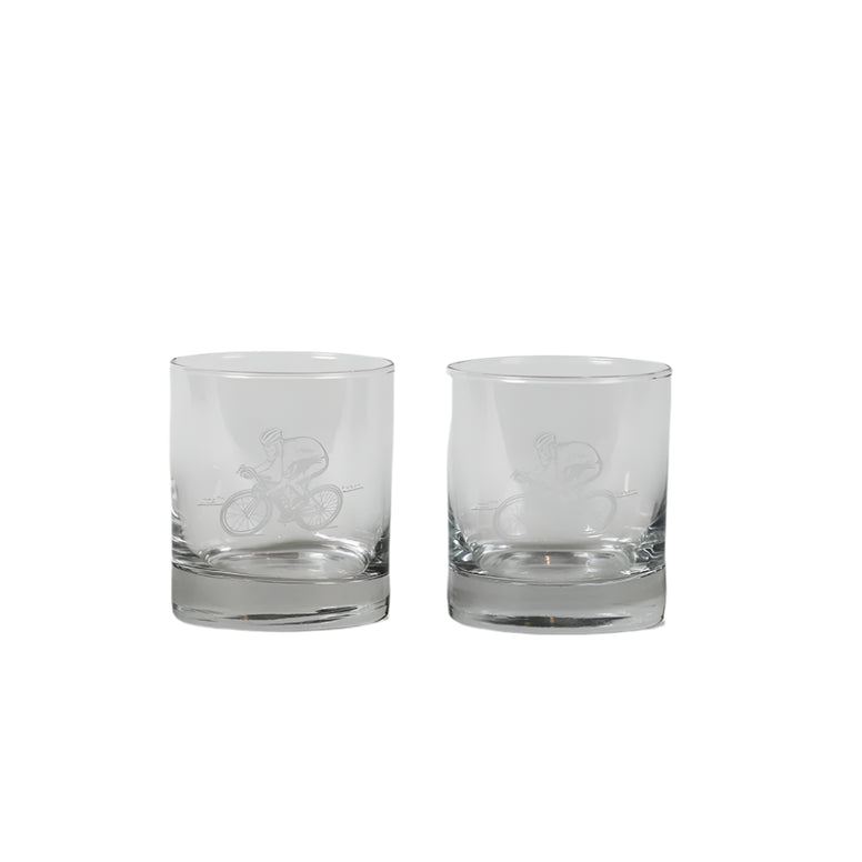 This set of 2 glass tumblers feature a striking print of a cycling design, making these tumblers a must-have for cycling enthusiasts.