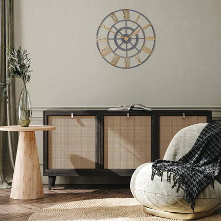 • The 24" Evening Star is a true skeleton clock which is now available in brass with contrasting gold roman numerals