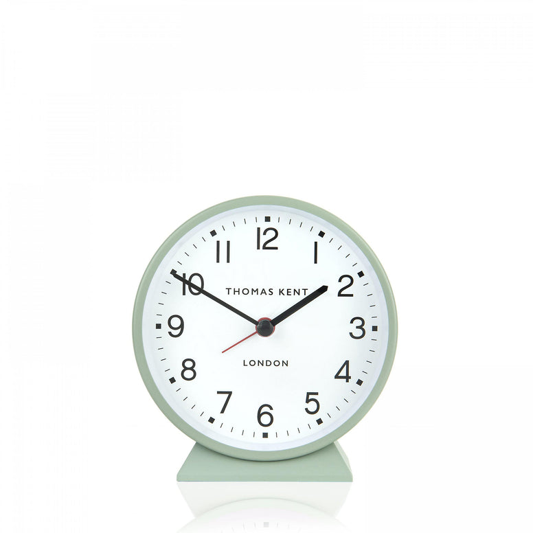 The retro-styled alarm clock is rejuvenated with a simple seagrass green pastel hue. The neat acrylic stand supports the characterful dial. Classic metal hands, supported by a distinct red alarm hand, pivot around the contemporary numerals. The overall design is matt-finished to create a modern, stylish appearance. The Puffin holds a silent movement.