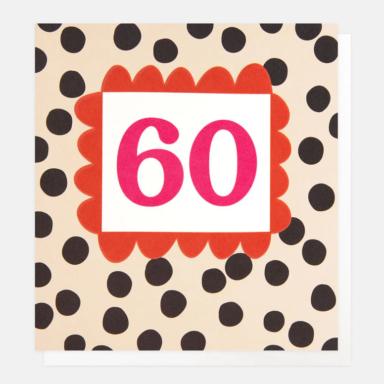 Part of our new Lots of Love range this cute charcoal dot 60th birthday card is finished with embossed detailing for that extra special touch.