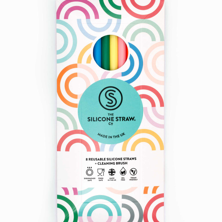 Introducing these vibrant and eco-friendly Colourful Straw Set, a delightful collection of 8 reusable silicone straws and a convenient cleaning brush. Say goodbye to soggy paper straws and embrace the joy of using these bendy, safe, and durable straws that are proudly made in the U.K