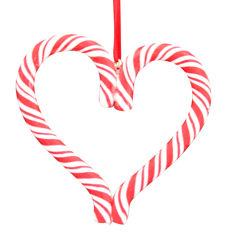 This sweet acrylic decoration brings a playful twist to tradition, with two classic red and white candy canes forming a heart. Lightweight and shatterproof, it’s perfect for trees, wreaths, or gifting as a festive token of love.