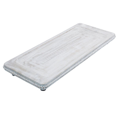A gorgeous, large handmade wooden beaded tray, carefully finished in a rustic whitewash for that timeless, artisan feel. Versatile and full of character, this footed platter is the perfect companion for your ottoman or coffee table – style it with candles, seasonal foliage, or a stack of favourite books.
