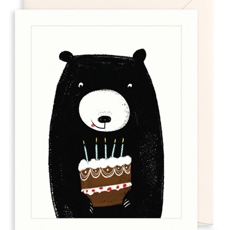 Celebrate an important birthday with this great birthday card. This card features a bear holding a large birthday cake.