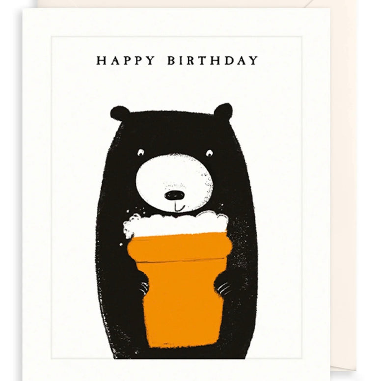 Say happy birthday with this adorable birthday card. This card features bear holding a big pint of beer. The card says 'Happy birthday'.