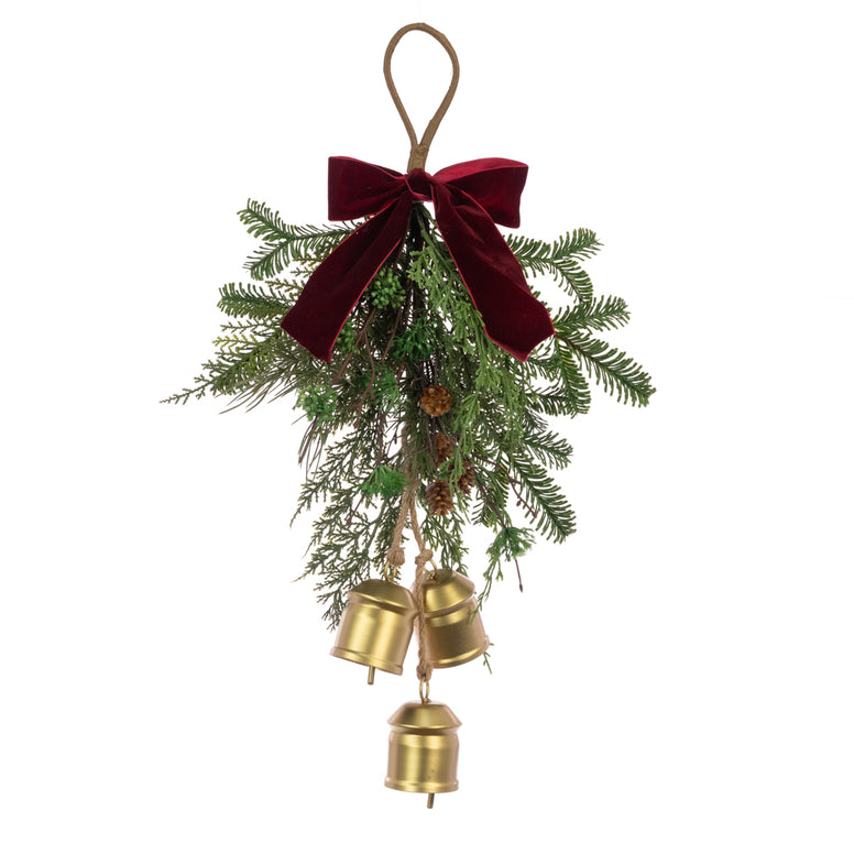 Add a traditional touch to your festive décor with the Belmesthorpe Hanger. Featuring a classic bow and a trio of metal bells, this charming decoration brings a rustic, homespun feel to doors, handles, or mantelpieces. A simple yet striking piece to ring in the season.