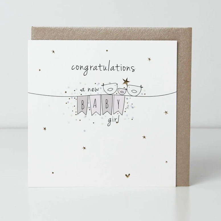 Baby Girl Bunting Birdie Card