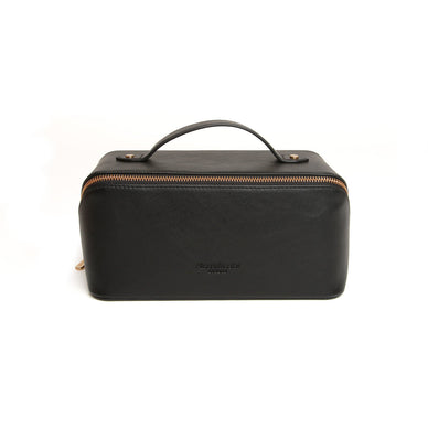 The London Train Case is a luxurious accessory crafted from exquisite black vegan leather. This travel essential combines practicality with sophistication, offering a sleek and stylish solution for your storage needs. The refined black hue enhances the overall aesthetic, while the premium quality of the vegan leather ensures durability and a timeless appeal. The train case is designed for the discerning individual who appreciates both functionality and elegance, making it an ideal companion for your journeys.