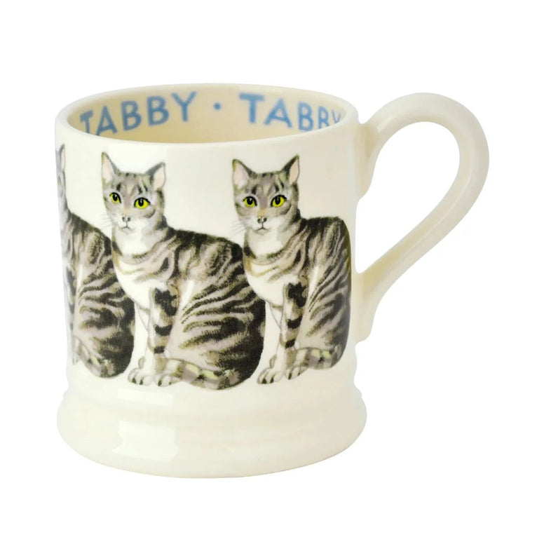 Feline lazy and ready for a warm drink? Let the string of tabby cats on our Cats Tabby 1/2 Pint Mug give you a well-earned furry hug.