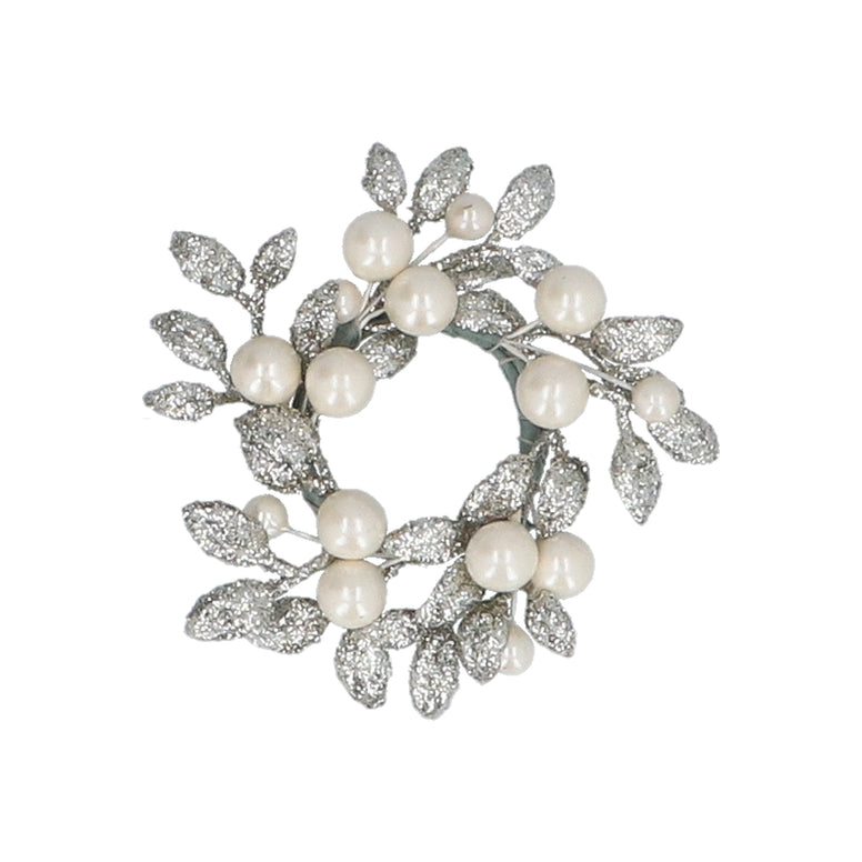 This small candle ring features a beautiful blend of champagne glitter and soft pearl accents, perfect for adding a touch of festive elegance. Designed to sit around a taper or votive candle, it’s ideal for table settings, shelf styling, or subtle Christmas sparkle.