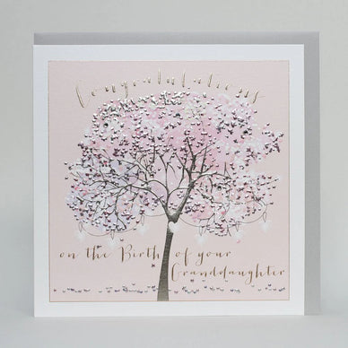 Celebrate the arrival of a new Granddaughter with this Congratulations on the Birth of Your Granddaughter card. This high-end, beautifully hand drawn card is finished with emboss and opulent gold foil, making it truly special to give.