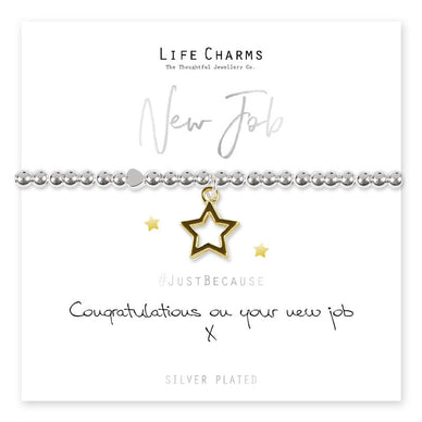 Elevate your style with our Congratulations On Your New Job Bracelet. This stunning gold plated star charm on a 5mm beaded stretch bracelet exudes elegance. Presented in a luxurious gift box, it comes with a Just Because 'Congratulations on your new job' card. Our high-quality, tarnish-resistant jewelry will make the perfect gift for this special occasion.