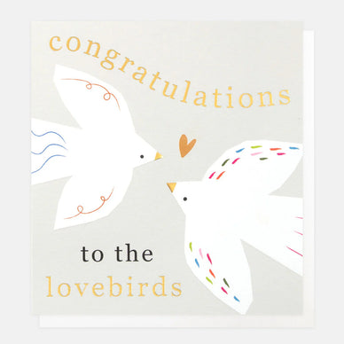 This cute 'congratulations to the lovebirds' card is perfect as an engagement or wedding card for a happy couple. Featuring gold foil and embossing for that extra special touch.