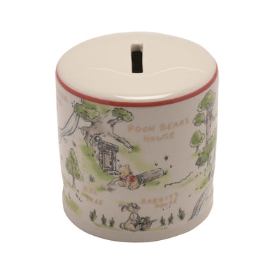 A Winnie the Pooh ceramic money box from DISNEY®. This wonderful money box features the instantly recognisable Winnie the Pooh characters and brightens up saving for a rainy day. The eye-catching, ceramic money box features perfect white colouring, complete with individual printed illustrations of Winnie the Pooh and friends. The money slot is located on top, whilst its easy-to-remove rubber plug sits on the base for the easy retrieval of funds. The money box is packaged in a kraft box with window.