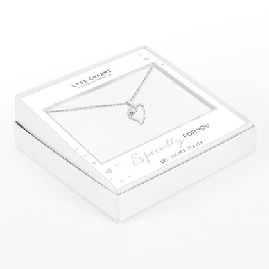 Adjustable chain necklace with open heart charm with stone crafted in silver with attention to detail and aesthetic appeal. To add to the luxury experience, each piece of jewellery includes a complimentary gift box.