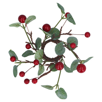 Enhance the ambiance of your home with our Eucalyptus/Red Berry Candle Ring, Small. The vibrant red berries and refreshing eucalyptus create a luxurious and sophisticated atmosphere. Add a touch of elegance and a hint of nature to your space with this premium candle ring.