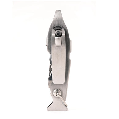 An angler's best friend. This sleek stainelss steel multi tool has everything you need for a day out fishing; Pincer, Nail Clipper, Knot Tag crimper, knife, screwdriver, split ring opener, scissors, hook eye cleaner, lanyard ring- all in one compact design.