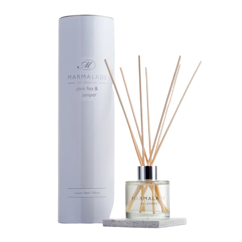 Indulge in luxury and elevate your surroundings with our Fizz and Juniper Diffuser. Immerse yourself in the intoxicating blend of pink fizz superior, juniper berries, sugared rose petals and winter peony, all contained in a 100ml/3.38 fl oz bottle. Create a sophisticated atmosphere with this elegant and exclusive fragrance.