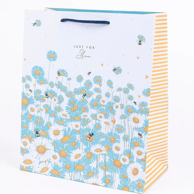 Luxury eco gift bags beautifully branded in Belly Buttons Design style with woven paper handles and gift tag.Portrait gift bag.