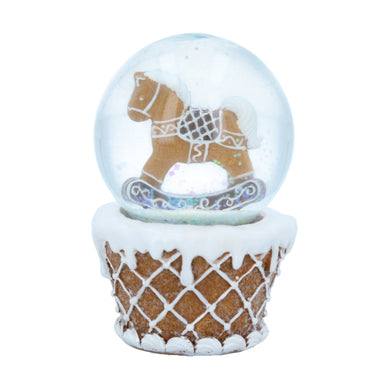 Introducing the Gingerbread Rocking Horse Snow Globe - a charming addition to your holiday decor. With its intricate design, this snow globe features a festive gingerbread rocking horse that will add a touch of whimsy to any room. Shake it up and watch as the snow falls, creating a magical and enchanting scene. Elevate your holiday aesthetic with this luxurious and exclusive snow globe.