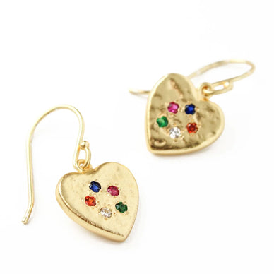 Handcrafted using fair trade techniques by artisans in India, these drop earrings feature stunning hammered hearts and a range of sparkling cubic zirconia stones.