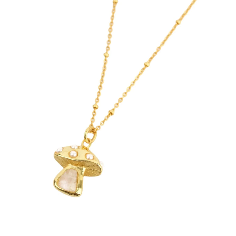 Gold Necklace featuring a Moonstone and Pearl Mushroom Charm