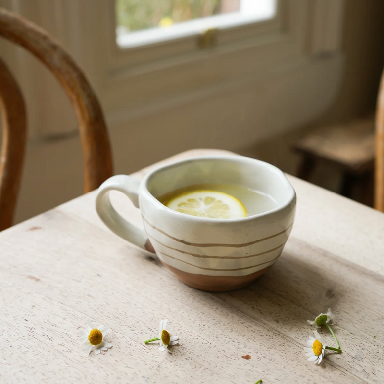A hand painted tea cup with Breton stripes. The hand finished nature gives a beautiful organic feel to the piece, meaning no two pieces will be identical - which we think adds to their charm and makes them feel extra special.