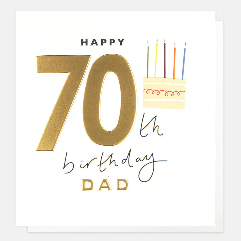 This cake 70th birthday card for your dad features gold foil and embossing for that extra special touch.