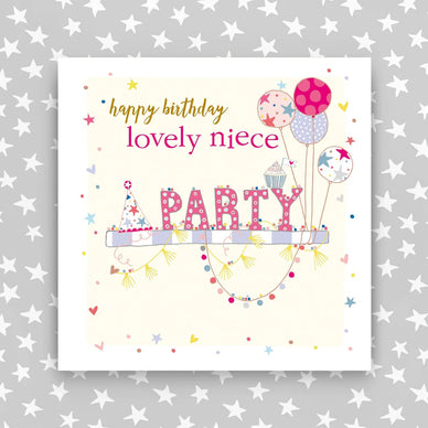 Happy Birthday lovely Niece. Foiled and Embossed. Supplied with a grey envelope.