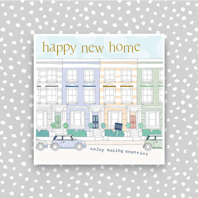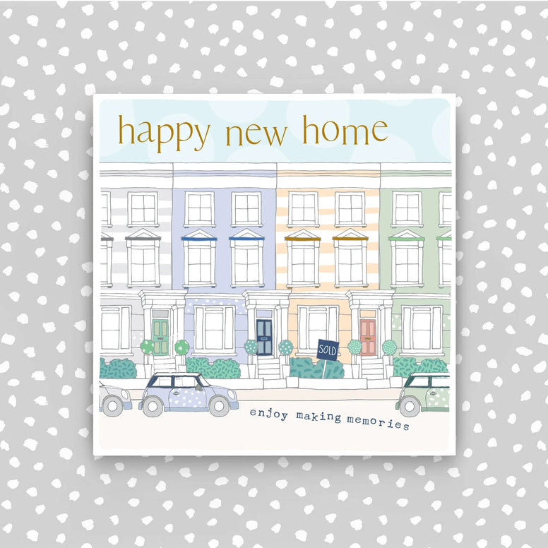 Happy New Home - Street Scene. Foiled and embossed. Supplied with an envelope.