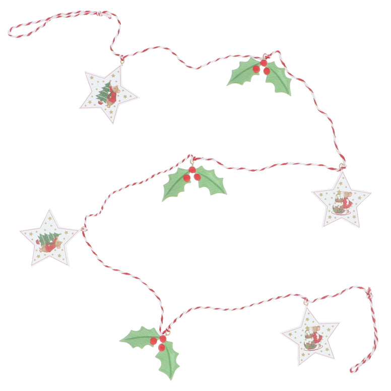 Holly & Alfie Mouse Star & Holly Wooden Decoration