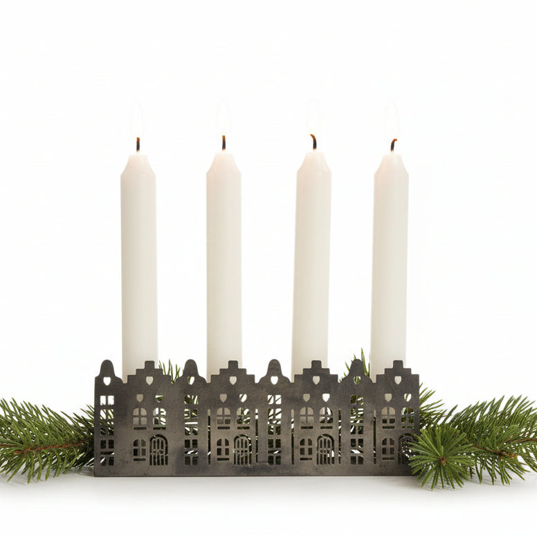A charming decorative candle holder inspired by classic house façades, perfect for adding a warm, cosy glow to shelves, windowsills or tables.