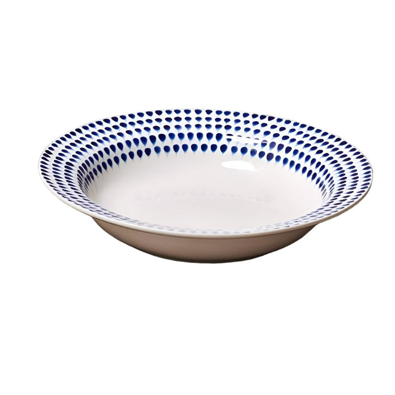 Indulge in the ultimate pasta experience with our exquisitely crafted Indigo Drop Pasta Bowl. Featuring a deep base and a wide level rim adorned with our signature indigo drop design, this bowl is the epitome of elegance. Each piece is carefully handcrafted on a traditional potters wheel and handpainted with precision.