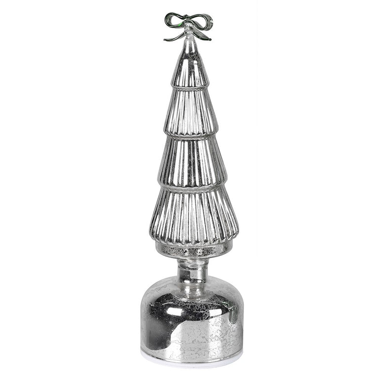 Bring a touch of festive magic to your home with the Lit Rotating Bow Tree. This charming glass tree features a bright green LED bow that spins slowly at the top, creating a delightful, twinkling effect sure to catch every eye. Perfect for adding whimsy and warmth to any room during the holiday season, its gentle rotation and glowing light bring holiday cheer in a fun and captivating way. Let this playful decoration become the centerpiece of your seasonal décor, sparking smiles and festive spirit for all who see it.