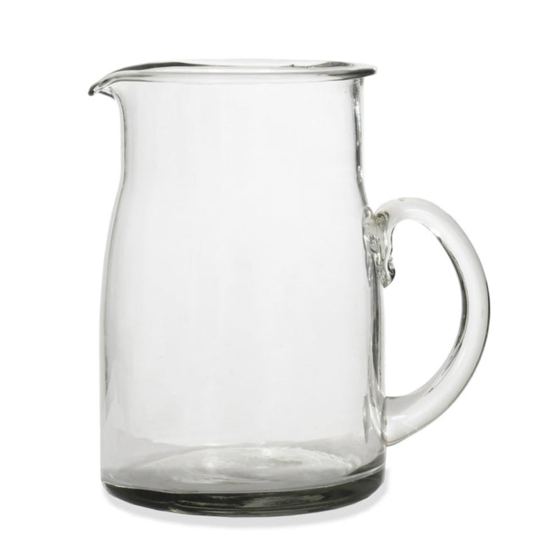 Handmade from exquisite Glass, the Meze Jug will become an indispensable item for use with every meal. From orange juice with breakfast, lemon or mint water at lunch to fresh cream with evening desserts. They have a chunky rounded shape and curved handle for ease of pouring.