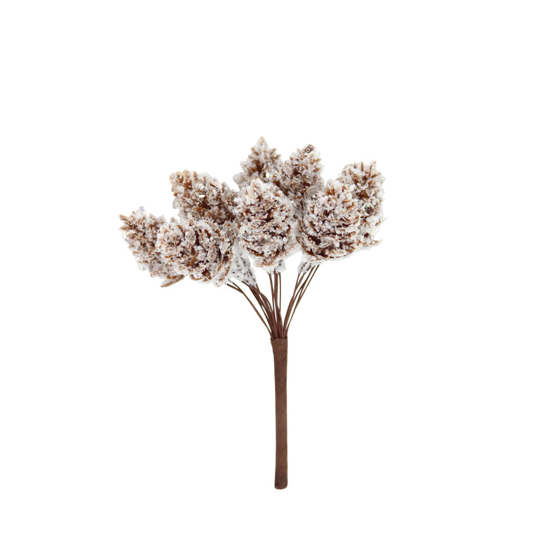 Bring a touch of the outdoors in with this charming bunch of natural pinecone picks, lightly dusted with artificial snow for a freshly frosted look. Perfect for adding texture to wreaths, garlands, table centrepieces, or festive floral arrangements.