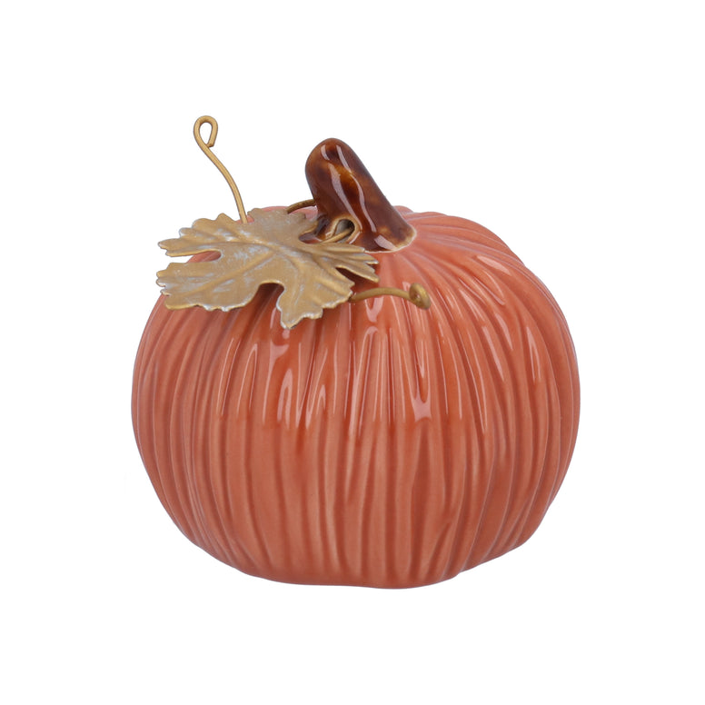 This Mini Pumpkin Stoneware Ornament in rich autumnal orange is the perfect pop of seasonal colour. Finished with a glossy gold stem, it adds a touch of harvest charm to shelves, tables, or mantels. Style alone or mix and match with other pumpkins for a cosy, collected look.