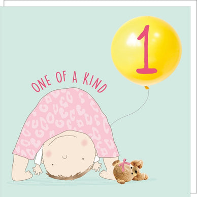 Peekaboo! Cute first birthday card for a ‘one of a kind’ one year old! A bit of fun for the kids with this Rosie Made a Thing Yippee kids number range. Printed in the UK on high quality 300gsm FSC approved board with a die-cut design. Blank inside with a white envelope.