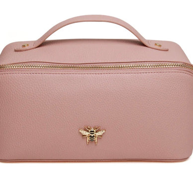 The ultimate, mini luxury beauty case by Alice Wheeler London. Perfect for keeping all of your beauty essentials together and in order, Featuring gold toned metal zip fastening, with a wide opening revealing an inner compartment,  fully lined and includes internal pockets for keeping everything together and in order.
