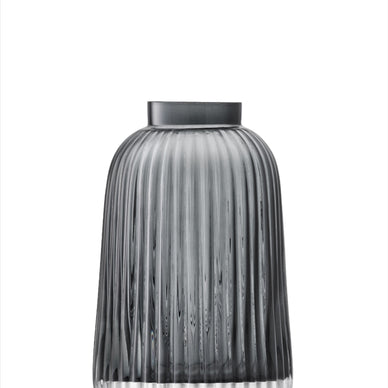 A mouth-blown glass vase with a narrow neck, curved shoulders and flared base. The tactile, pleated finish is inspired by the gathering of pleated fabric.