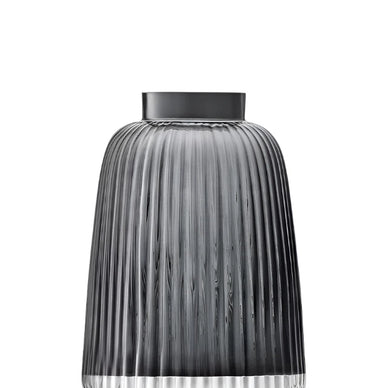 A mouth-blown glass vase with a narrow neck, curved shoulders and flared base. The tactile, pleated finish is inspired by the gathering of pleated fabric.