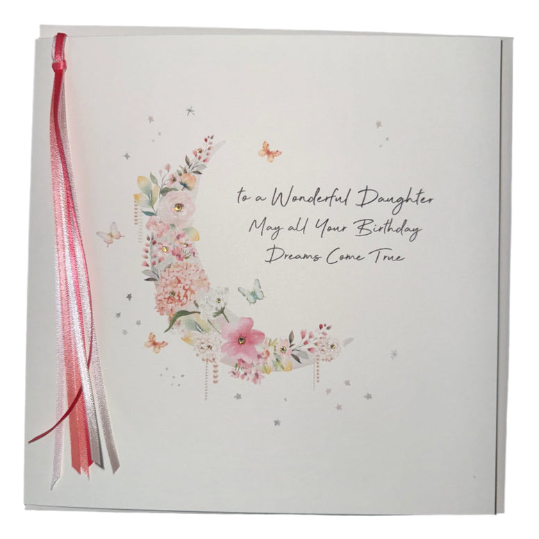 Indulge your loved one with this Five Dollar Shakes card, from their RIBBONS & ROSES collection featuring a beautiful moon design and a heartfelt message for your wonderful daughter. Elevate your gift-giving with a touch of luxury and grace.