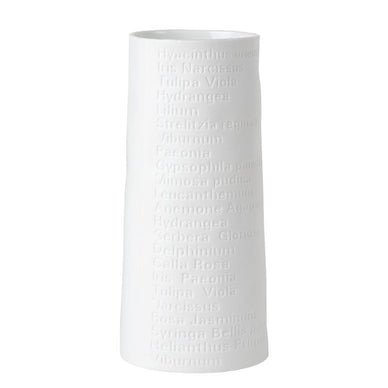 This exquisite vase displays a beautiful arrangement of flower names along its front. It is crafted by hand with partially glazed porcelain, making it a timeless gift option for those who enjoy taking cuttings from their garden or simply love to showcase flowers. Simple, elegant, and poetic, this handmade vase measures approximately 7 x 15cm and exudes a sense of sophistication.