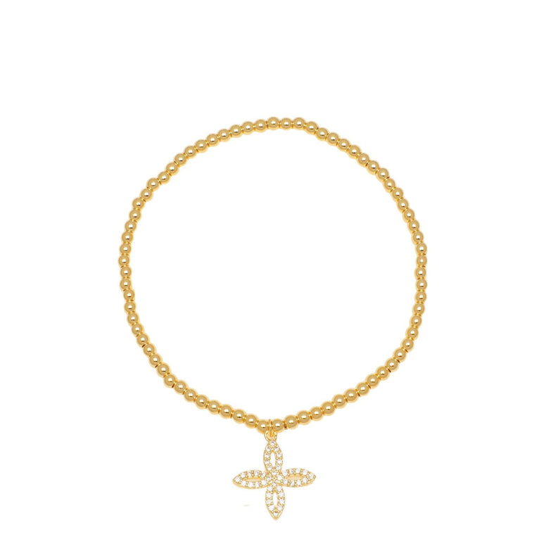 Elevate your look with the mesmerizing Dainty Clover Pendant bracelet. This captivating piece features a delicate clover design accented with shimmering CZ stones, creating a sophisticated and eye-catching statement.
