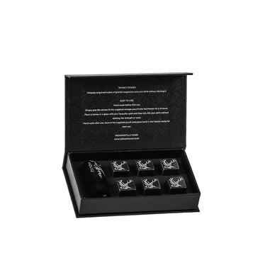 Embody the majesty of the stag with our Stag-themed Whisky Stones set. These six stones provide a sophisticated way to chill your drinks for extended sipping pleasure. The captivating stag design on each stone adds a touch of wilderness charm to your glass. Delivered in an elegant gift box, it's an ideal choice for those who savour whisky in style.